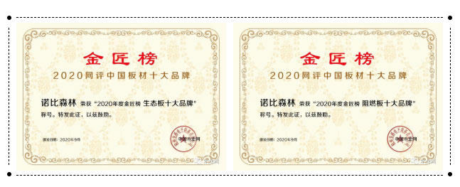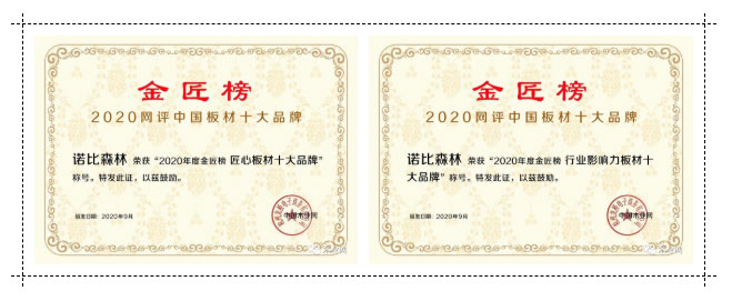 時間步入金秋九月,備受關(guān)注由中國木業(yè)網(wǎng)主辦的2020中國板材金匠榜網(wǎng)絡(luò)評選落下帷幕。在近千家品牌中,偉勝集團旗下主打品牌諾比森林實力“亮劍”,一舉斬獲四項行業(yè)重量級大獎——“匠心板材十大品牌”、“生態(tài)板十大品牌”、“行業(yè)影響力板材十大品牌”、“阻燃板十大品牌“,為高質(zhì)量的發(fā)展篇章增添了濃墨重彩的一筆。